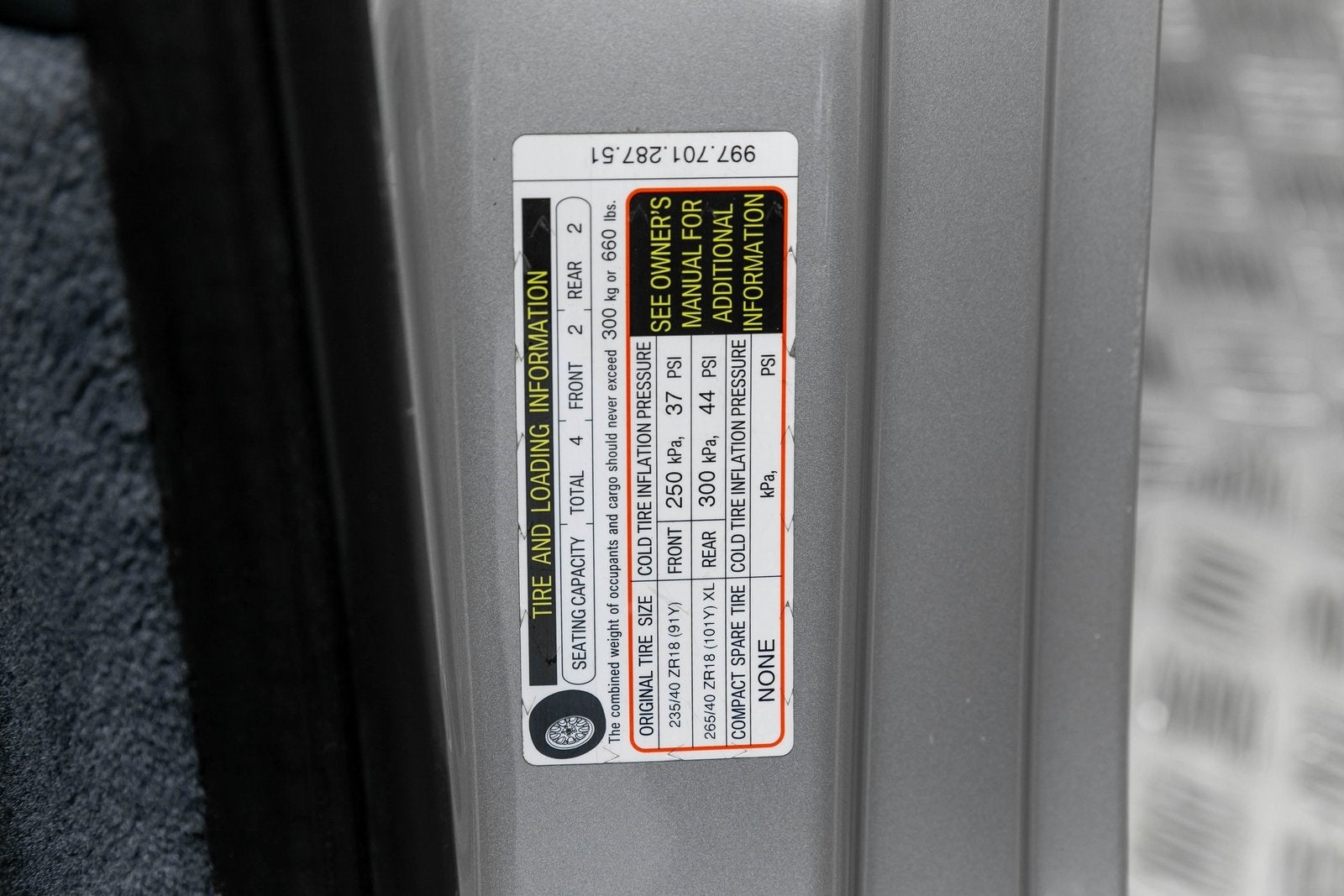 - Front Tire Size: P235/40ZR18