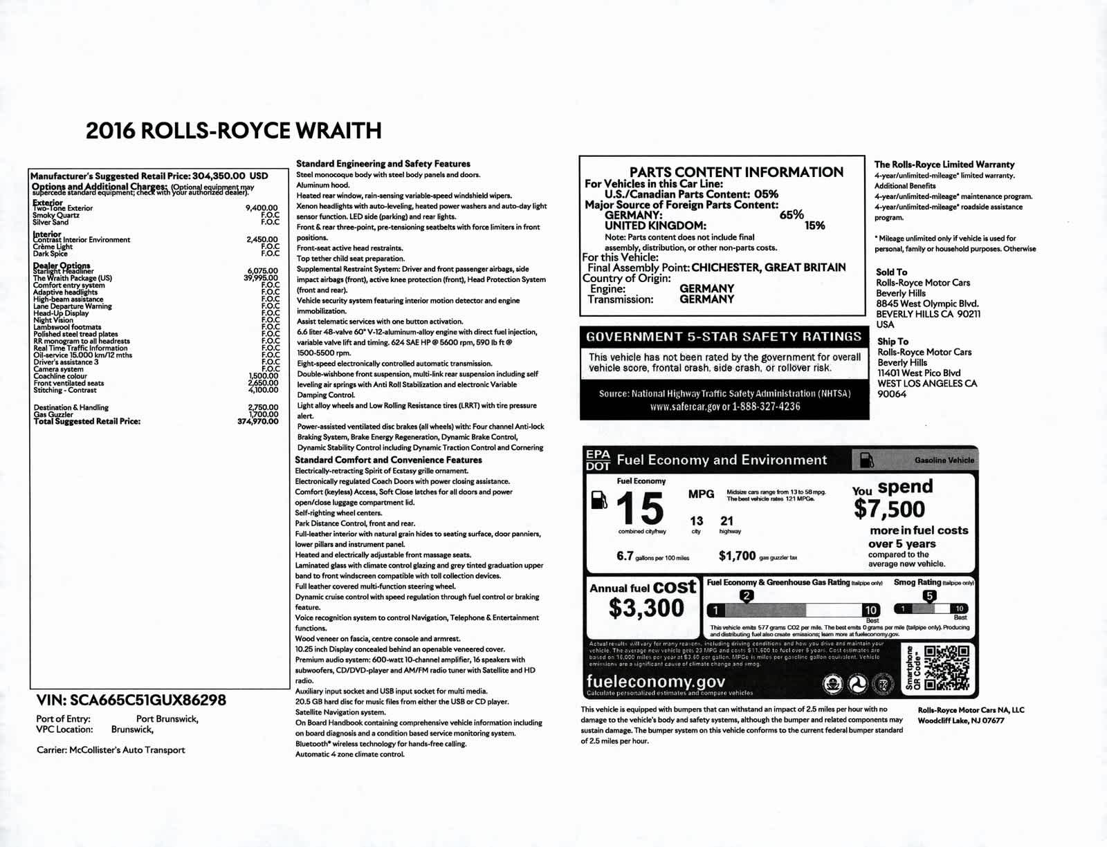 - Vehicle Name: Rolls-Royce Wraith